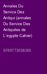 Annales Du Service Des Antiqui (annales Du Service Des Antiquites de L`egypte Cahier)