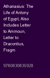 Athanasius: The Life of Antony of Egypt, Also Includes Letter to Ammoun, Letter to Dracontius, Fragment to Festal Letter 39