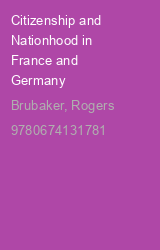 The difference between French and German definitions of citizenship is instructive--and, for millions of immigrants from North Africa, Turkey, and Eastern Europe, decisive. Rogers Brubaker shows how this difference--between the territorial basis of the French citizenry and the German emphasis on blood descent--was shaped and sustained by sharply differing understandings of nationhood, rooted in distinctive French and German paths to nation-statehood.