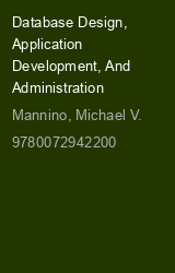 Mannino's Database Design, Application Development, and Administration provides the information you need to learn relational databases. The book teaches students how to apply relational databases in solving basic and advanced database problems and cases. The fundamental database technologies of each processing environment are presented; as well as relating these technologies to the advances of e-commerce and enterprise computing. This book provides the foundation for the advanced study of individual database management systems, electronic commerce applications, and enterprise computing.