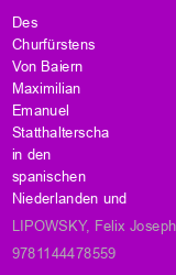 Des Churfürstens Von Baiern Maximilian Emanuel Statthalterschaft in den spanischen Niederlanden und Dessen Feldzüge: Historisch geschildert und mit einem Anhange über die Schicksale der Jesuiten in Ba