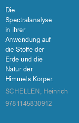 Die Spectralanalyse in ihrer Anwendung auf die Stoffe der Erde und die Natur der Himmels Korper.