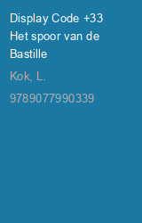 Compacte tafeldisplay met daarin 6 exemplaren van Code+33 Het spoor van de Bastille, het eerste deel van een nieuwe reeks inforomans voor 10 + over favoriete vakantielanden. 'Verborgen' in een superspannend plot passeert veel informatie over bezienswaardigheden, geschiedenis, taal, cultuur, eetgewoonten etc. van Frankrijk de revue. Een spannend reisavontuur waar je veel van opsteekt.Voor info over het verhaal zie de titelinformatie bij Code+33 Het spoor van de Bastille.