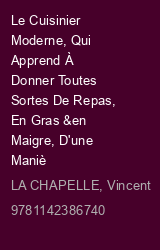 Le Cuisinier Moderne, Qui Apprend À Donner Toutes Sortes De Repas, En Gras &en Maigre, D'une Manière Plus Délicate Que Ce Qui En a Été Écrit Jusqu'à Présent: Divisé En Cinq Volumes, Avec De Nouveaux M