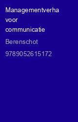 Managementverhalen voor communicatie Managementverhalen voor communicatie is het vervolg op het zeer succesvolle managementmodellen voor communicatie. Het modellenboek biedt handvatten om de dagelijkse weerbarstige werkelijkheid te ordenen, te structureren en succesvol aan de slag te gaan. Managementverhalen voor communicatie gaat in op de verhalen van de praktijk. Hoe combineren managers, bestuurders, directeuren, en communicatieadviseurs hun persoonlijke en professionele leven? Hoe gaan zij om met de dilemma's van alledag? En tot welke oplossingen komen zij. Dit boek bestaat uit veertien verhalen, waarin de hoofdpersoon u meeneemt in zijn wereld: de directeur van een vervoerbedrijf die alle actiegroepen tegen zich lijkt te krijgen, de wethouder die zijn stad wil positioneren, de burgemeester die van de ene crisis in de andere rolt, de verzekeringsmaatschappij die een nieuwe marketingstrategie wil doorvoeren, en zo verder. De verwikkelingen en complicaties nemen toe en op de climax