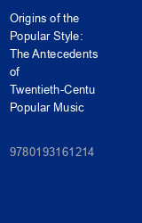 Origins of the Popular Style: The Antecedents of Twentieth-Century Popular Music
