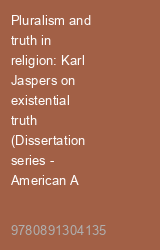 Pluralism and truth in religion: Karl Jaspers on existential truth (Dissertation series - American Academy of Religion)