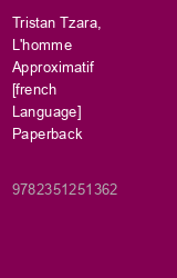 Tristan Tzara, L'homme Approximatif [french Language] Paperback